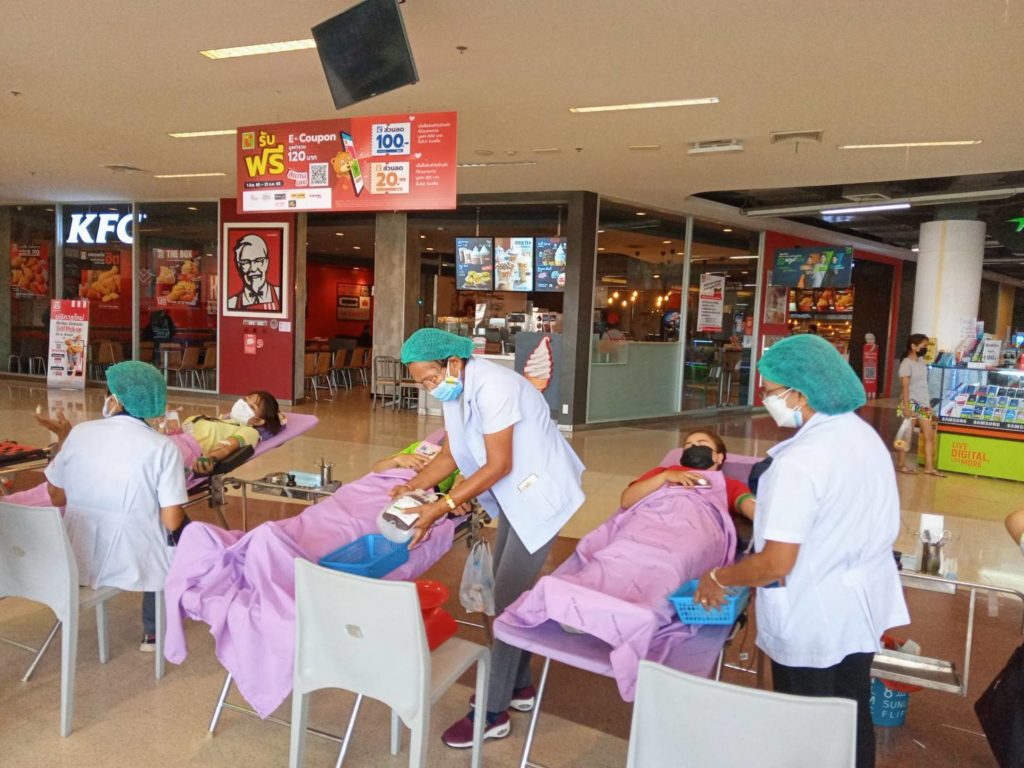 วันที่ 8 กรกฎาคม 2565 นางละมัย เจริญโสภา นายกเหล่ากาชาดจังหวัดตรัง มอบหมายนางวาลินี ธนทวี หัวหน้าพันธกิจที่ 3 พร้อมด้วยคณะกรรมการ สมาชิก เจ้าหน้าที่ และจิตอาสาสภากาชาดไทย ร่วมกับธนาคารเลือดโรงพยาบาลตรัง ออกหน่วยรับบริจาคโลหิต ดวงตา และอวัยวะ ณ บริษัท บิ๊กซี ซุเปอร์เซ็นเตอร์ จำกัด (มหาชน) สาขาตรัง สำหรับวันนี้ มีผู้บริจาคทั้งหมด 70 ราย บริจาคได้โลหิต 57 ยูนิต คิดเป็นปริมาณ 22,800 ซีซี. มีผู้แสดงความจำนงบริจาคดวงตา 8 ราย และผู้แสดงความจำนงบริจาคอวัยวะ 8 ราย พร้อมมอบหน้ากากอนามัยกับสายคล้องคอ 57 ชิ้น