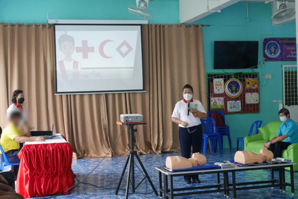 วันที่ 30 มิถุนายน 2565 นางละมัย เจริญโสภา นายกเหล่ากาชาดจังหวัดตรัง มอบหมายคณะวิทยาการเครือข่ายด้านการปฐมพยาบาล