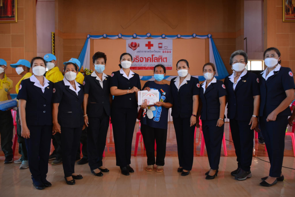 วันที่ 30 สิงหาคม 2565 นางนงค์นิตย์ เนียมศิริ นายกเหล่ากาชาดจังหวัดเลย มอบหมายกรรมการเหล่ากาชาดจังหวัดเลย , ที่ปรึกษาเหล่ากาชาดจังหวัดเลย , สมาชิกเหล่ากาชาดจังหวัดเลย ร่วมกับโรงพยาบาลเลย ,อำเภอด่านซ้าย , สาธารณสุขอำเภอด่านซ้าย , กำนัน ผู้ใหญ่บ้าน ออกหน่วยรับบริจาคโลหิต ดวงตา และอวัยวะ ณ ศาลาประชาคมอำเภอด่านซ้าย อำเภอด่านซ้าย จังหวัดเลย มี ข้าราชการ นักเรียน และประชาชน ร่วมบริจาคโลหิต ดวงตา และอวัยวะ มีรายละเอียดดังนี้