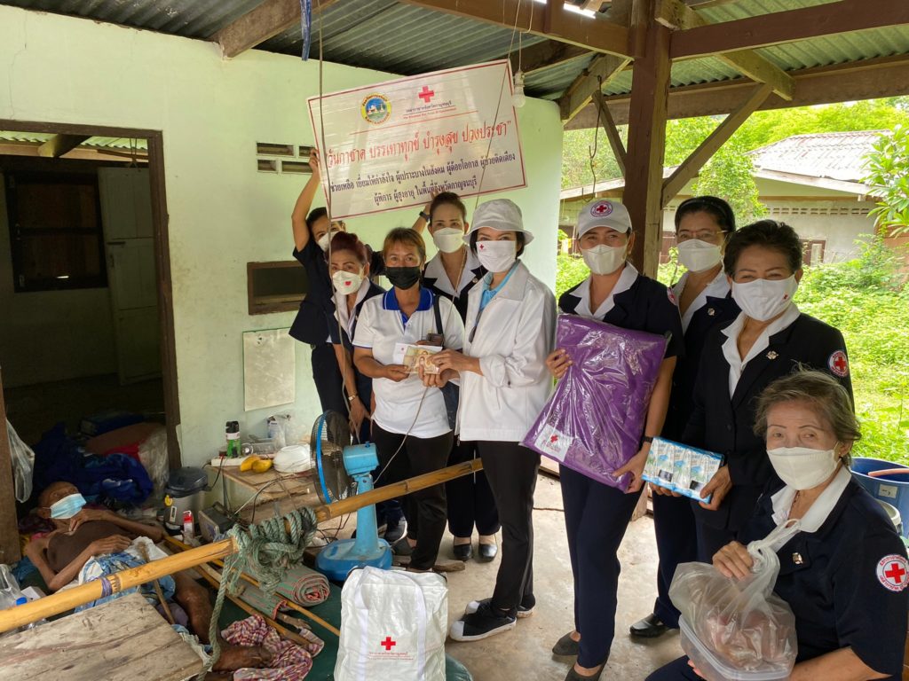วันที่ 19 พฤษภาคม 2565 นางรชยา ภูมิสวัสดิ์ นายกเหล่ากาชาดจังหวัดกาญจนบุรี พร้อมด้วยนางสาวเขมิกา ประเสริฐสม ภรรยาปลัดจังหวัดกาญจนบุรี และกรรมการ ที่ปรึกษา สมาชิกเหล่ากาชาดจังหวัดกาญจนบุรี ลงพื้นที่ช่วยเหลือผู้ป่วยติดเตียง ผู้สูงอายุ ผู้พิการ ผู้ยากไร้ ในเขตบ้านบ้านเขาแกร่งเรียง หมู่ 3 , 4 ตำบลท่ากระดาน อำเภอศรีสวัสดิ์ จังหวัดกาญจนบุรี จำนวน ราย โดยเหล่ากาชาดจังหวัดกาญจนบุรี ได้มอบเครื่องอุปโภค – บริโภค จำนวน 11 ชุด ผ้าห่ม 11 ผืน และเงินช่วยเหลือเบื้องต้น จำนวน 11 รายๆละ 3,000 บาท รวมเป็นเงิน 33,000 บาท