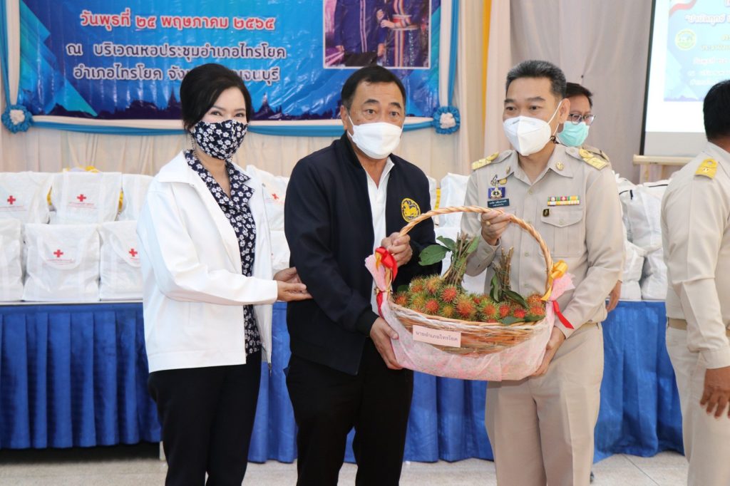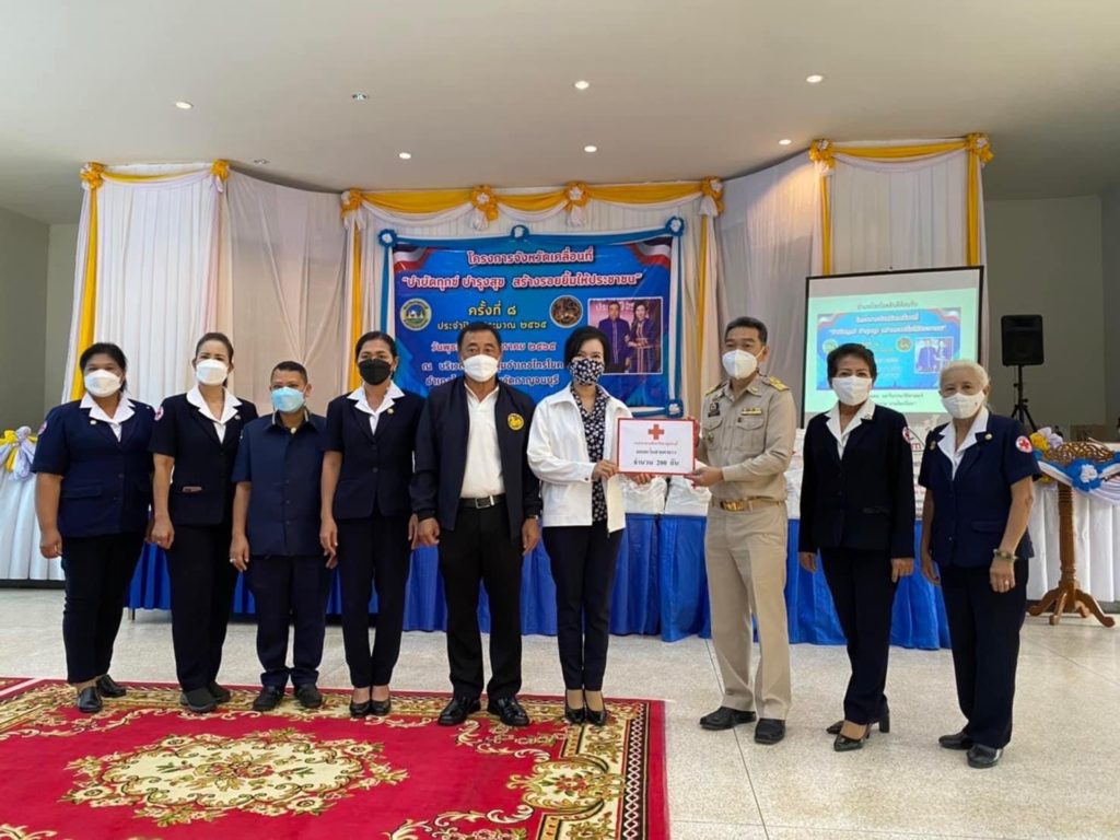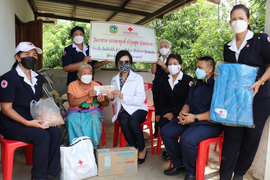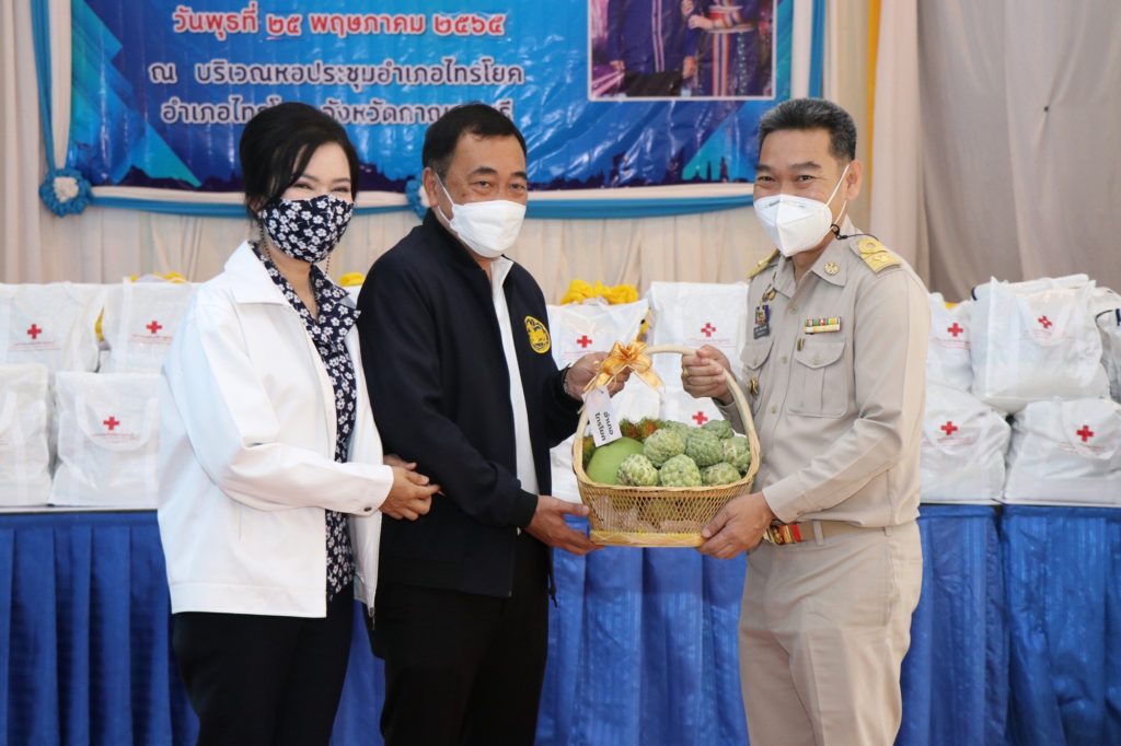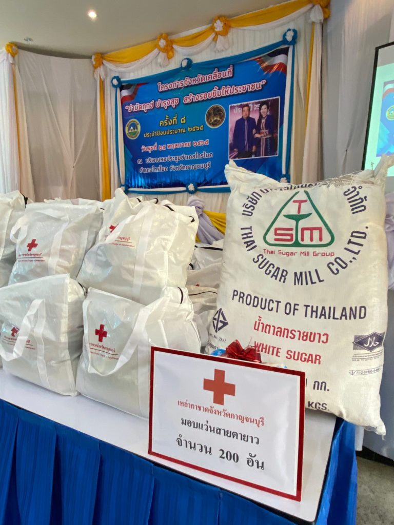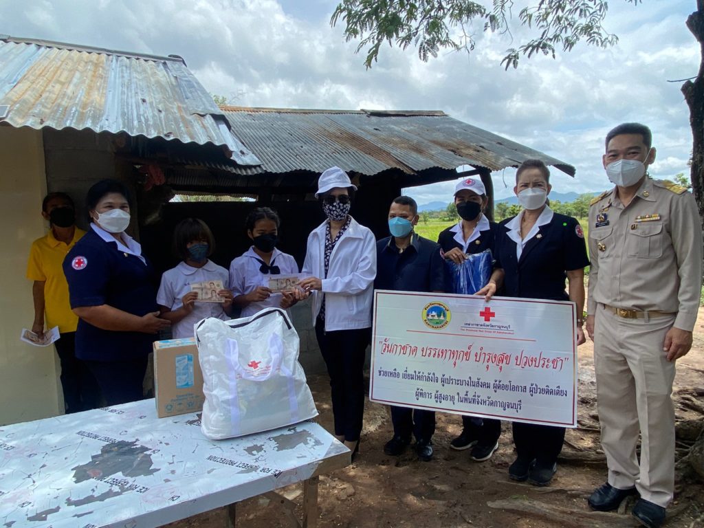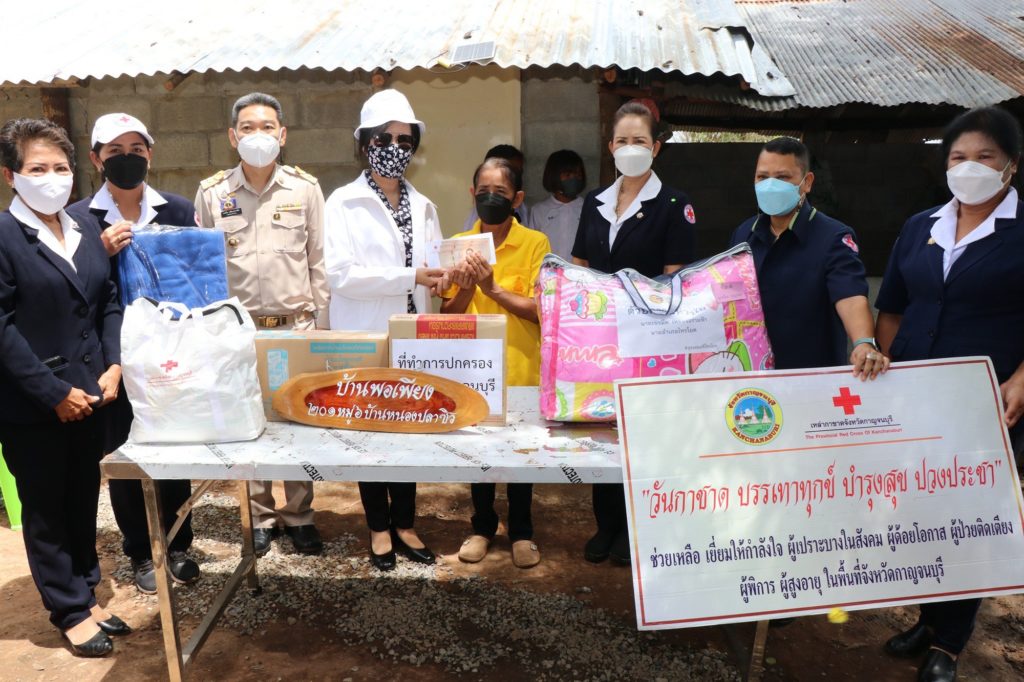 วันที่ 25 พฤษภาคม 2565 นายจีระเกียรติ ภูมิสวัสดิ์ ผู้ว่าราชการจังหวัดกาญจนบุรี (ประธานในพิธี) พร้อมด้วย นางรชยา ภูมิสวัสดิ์ นายกเหล่ากาชาดจังหวัดกาญจนบุรี และ นางสาวเขมิกา ประเสริฐสม ภรรยาปลัดจังหวัดกาญจนบุรี เหรัญญิกเหล่ากาชาดฯ กรรมการเหล่ากาชาดจังหวัดกาญจนบุรี ร่วมออกหน่วยจังหวัดเคลื่อนที่ บำบัดทุกข์ บำรุงสุข สร้างรอยยิ้มให้กับประชาชน ครั้งที่ 8 ประจำปี 2565 โดยมีนายอำเภอไทรโยค หัวหน้าส่วนราชการ ผู้นำชุมชนในท้องที่ ให้การต้อนรับพร้อมรายงานสภาพปัญหาความเดือดร้อนและความต้องการในพื้นที่อำเภอไทรโยค โดยเหล่ากาชาดจังหวัดกาญจนบุรี ได้สนับสนุนเครื่องอุปโภค – บริโภค จำนวน 100 ชุด และแว่นสายตายาวผู้สูงอายุ จำนวน 200 อัน เพื่อช่วยเหลือผู้ยากไร้ ผู้ด้อยโอกาส ในพื้นที่อำเภอไทรโยค และออกเยี่ยมเยียนประชาชน ผู้ป่วยติดเตียง ผู้ยากไร้ ผู้สูงอายุ ผู้ด้อยโอกาส จำนวน 4 ราย โดยเหล่ากาชาดจังหวัดกาญจนบุรี มอบเครื่องอุปโภค – บริโภค 4 ชุด ผ้าห่ม 4 ผืน พร้อมมอบเงินช่วยเหลือเบื้องต้น 4 รายละ 3,000 บาท รวมเป็นเงิน 12,000 บาท